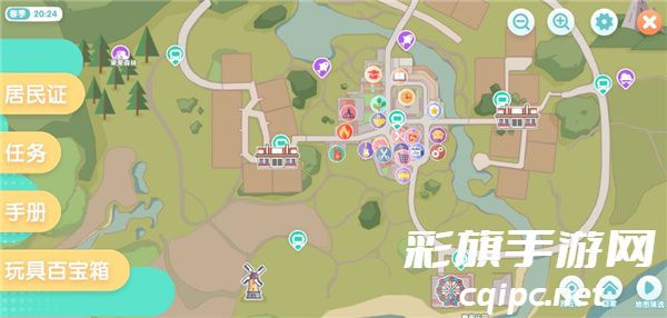 1、进入游戏后,点击屏幕右上方的菜单按钮,即可看见小镇的完整地图(看到图中的公交车标志了吗?那是真的可以传送的哦);
