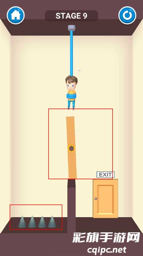 这个关卡将区域划分了两块,一块是尖刺,玩家需要通过转盘来将解救后的小男孩推到安全的区域。