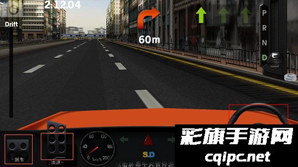 3、旋转右侧的方向盘可以控制车辆方向,点击左侧的按键可以控制车辆刹车、加速。