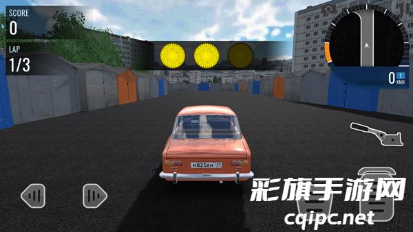 5、进入游戏如图,玩家需驾驶俄罗斯汽车进行跑圈,屏幕左边控制方向,右边则为油门和刹车;