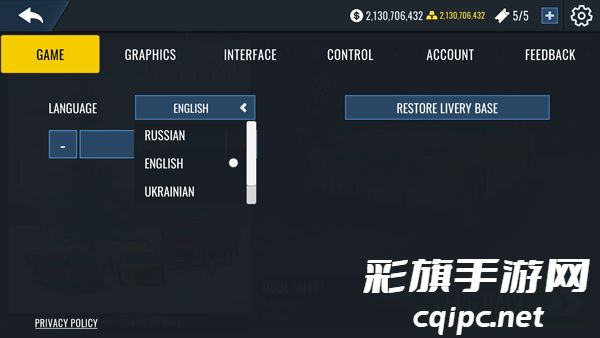 2、点击游戏右上角设置按钮,点击LANGUAGE即可切换语言,如俄文、英文等。