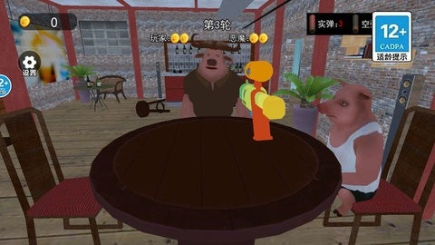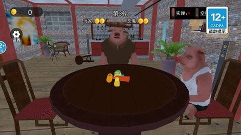 玩家面临6发子弹的风险,若生存,继续游戏;否则出局。
