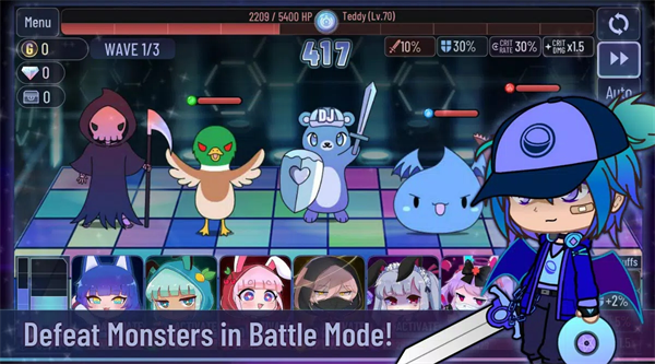 这款游戏当中采用的是霓虹灯光,游戏玩法上采用经典的加查的特色,Q版的人物造型很可爱呢。