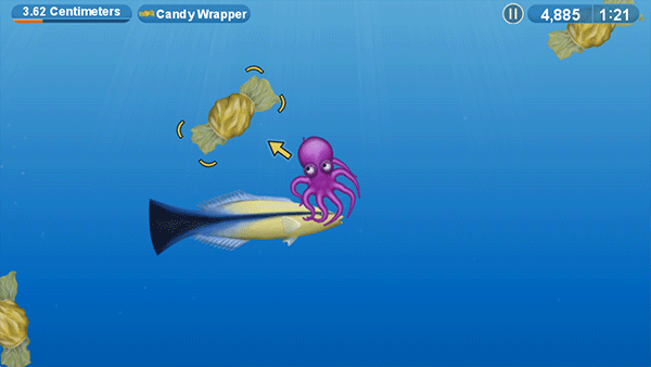 4、通过移动小章鱼进行吃垃圾,时间花的越少评价越高。