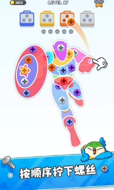 螺丝大师解谜大作战游戏的玩法非常丰富,游戏中玩家需要按照顺序拧下所有螺丝,游戏中会有几种颜色不同的螺丝,等待玩家拧下,并且游戏的玩法也非常有趣,玩家在拧下对应颜色的螺丝使,也要主要需要卸下所有板子,游戏的关卡超级丰富,并且每一个关卡的游戏内容也会不同,玩家可以体验到不同的关卡带来的游戏玩法,并且沉浸式体验游戏带来的乐趣。