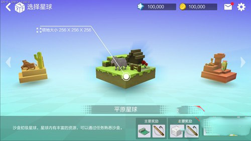 在进入我的星球之后,可以从平原、荒野、沙漠这些地形中选择你喜欢的。如果你是初次接触这类游戏,建议按新手引导的来就好,比如说难度最低的平原家园。有现成的木屋,随处可见的鸡牛羊。