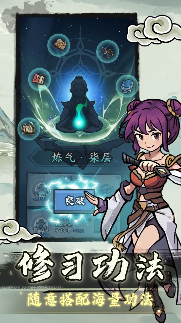 1、玩家可以通过完成任务来提高角色的能力,解锁新的故事,体验一段修炼仙人的奇妙旅程。