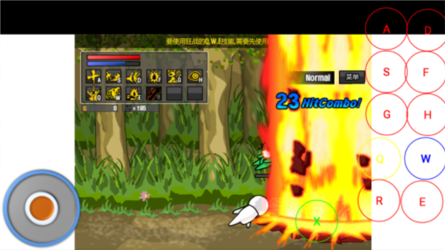 3.进入游戏主界面,可以看到屏幕下方提供了虚拟键盘,但是键位顺序比较乱,需要玩家进入菜单自己设置