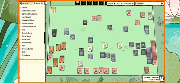 1、整合城市管理与叠牌玩法,各种实体都以卡牌呈现,如熊、妖精等。