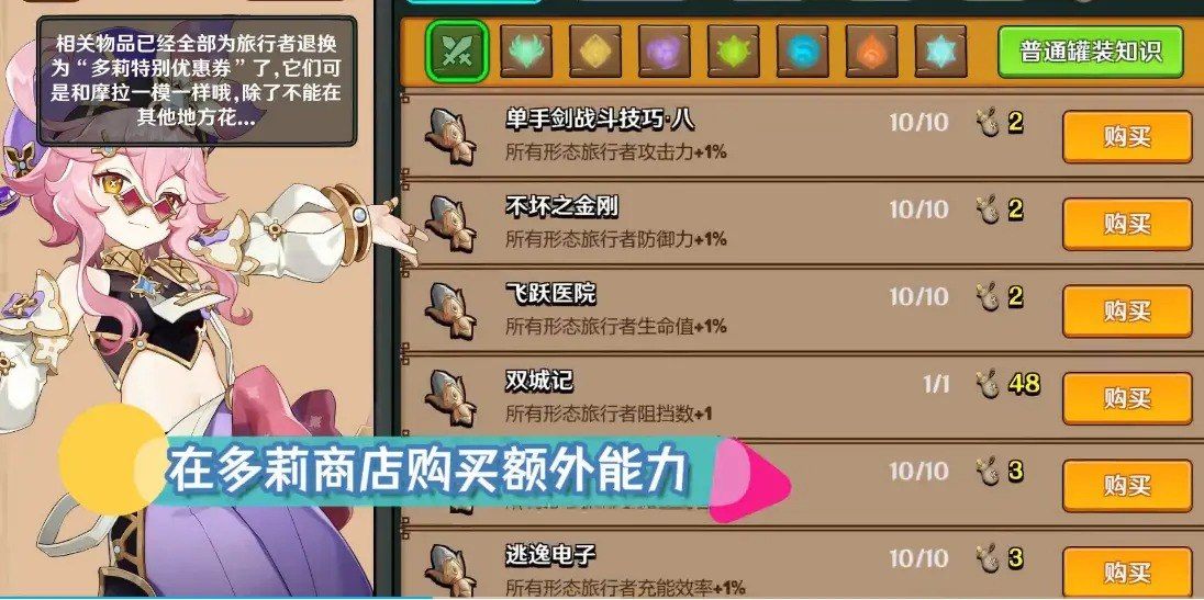 7、新角色「旅行者-岩」,通关主线2-1后赠送,同时解锁多莉商店岩元素罐装知识区域。