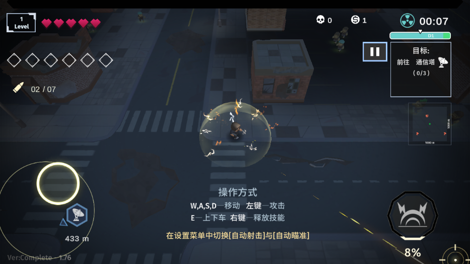 游戏目前有4个章节,打开通信塔,存活规定时间,破坏母巢,基地保卫战
