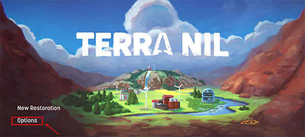 1、打开伊始之地游戏,进入主界面,点击左下角“Options”。