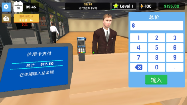 4、玩家需要根据顾客结账的金额刷卡,输入相应金额;
