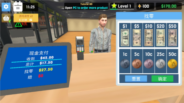 5、有的顾客还会拿着现金来结账,这时候玩家就需要找零了。