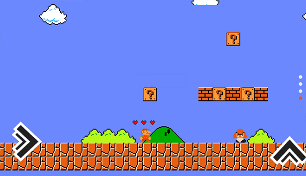 基于经典《超级马里奥》改编的同人冒险闯关游戏,通过虚拟按键控制马里奥移动、跳跃,躲避障碍物和陷阱,操作逻辑与原版超级马里奥相似。