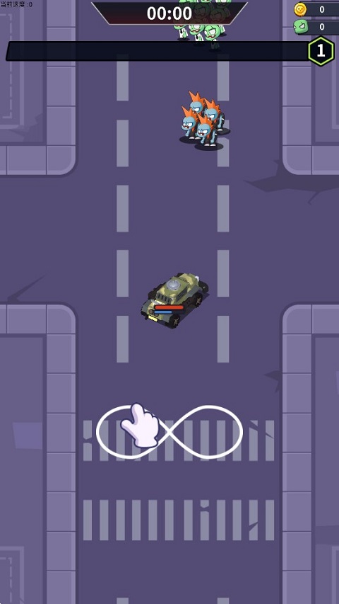 1、如图所示,在竖屏界面的操作风格下,玩家可以在屏幕上滑动以操作战车进行移动。