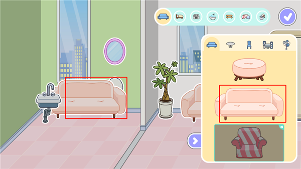 4、里面为用户提供了非常丰富的家居,如沙发、桌子、洗手台、床、浴缸等等,玩家可以自己选择你想要的家居;