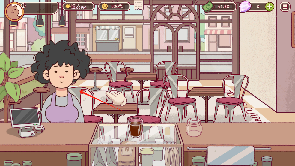 3. 玩家需要在前台接受顾客的订单请求,然后回到制作室制作咖啡并交给顾客完成交易。