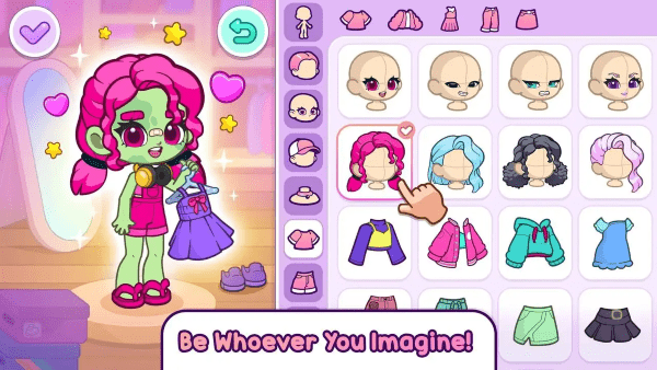 2. 你可以在任何时候创建一个新的卡通人物。里面有很多免费的服装、装饰品等,你可以根据自己的喜好搭配。