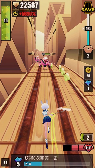3、在战斗少女跑酷这款跑酷游戏中,没有什么是不能被砍的。面对中间出现的小丑人物,唯一的选择就是主动出击。当玩家积累了一定的能量后,便会触发独特的Fever模式。这个特写镜头在经典和杀戮之间形成了强烈的对比。同时,它也更好地呈现了一种另类的暴力美学。