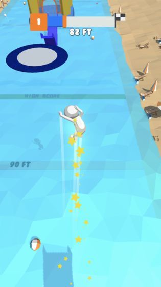 一开始还没搞清楚怎么玩,首先玩家将站在高空,你的方向是在不断地变化的,地面上会有红圈就是预计落地的反向,你需要落在小人最多的地点,然后成功被接住以后,按住屏幕来飞向水池,游戏的操作简单容易上手,推荐给喜欢休闲游戏的玩家。