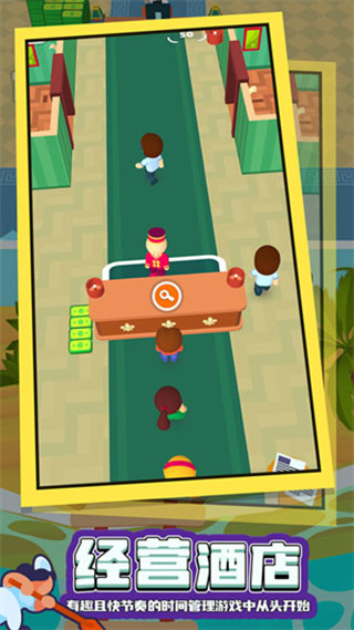 2. 进入游戏后,玩家将变成一家酒店的老板。通过控制角色,他们可以招待客人,获得资金来装修和升级,管理和升级你的酒店,吸引更多的客人喜欢和入住,创造最好的酒店!