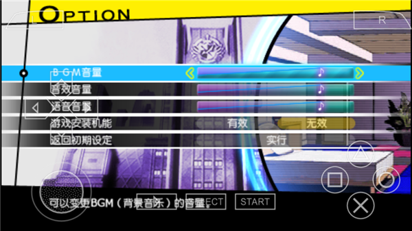 4、在“option”中可以对“音量、音效音量、语言音量、游戏安装机能”等进行设置。