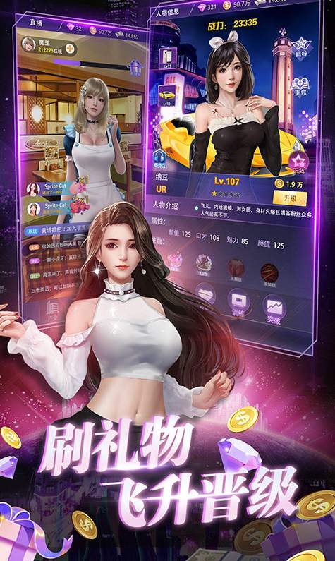 6、在剧情模式里你可以去其它女神的直播间与她们互动,打赏她们会增加好感度。