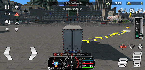 3.进入卡车之星后,先控制车辆到达前方装货点(左下角为方向控制,右下角是前进和刹车,要倒车时点击前进键挂倒车档)