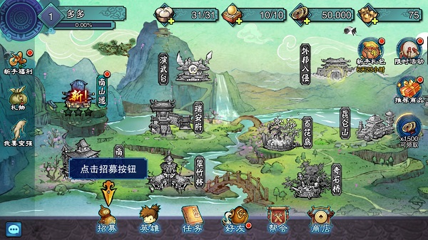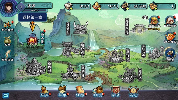 2、每一章节都设有不同难度的关卡,通关后可获得神秘招募令,更有几率获得5星大侠。