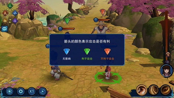 4、箭头的颜色表示攻击是否有利,蓝色则为无影响,绿色则代表利于攻击,红色则是不利于攻击。