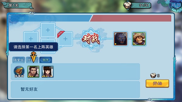 3、开战前,玩家可通过布阵来调整英雄站位。