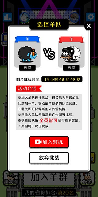 1、下载安装好羊了个羊最新版,进入游戏之后,我们点击下方的加入羊群按钮来选择团队。