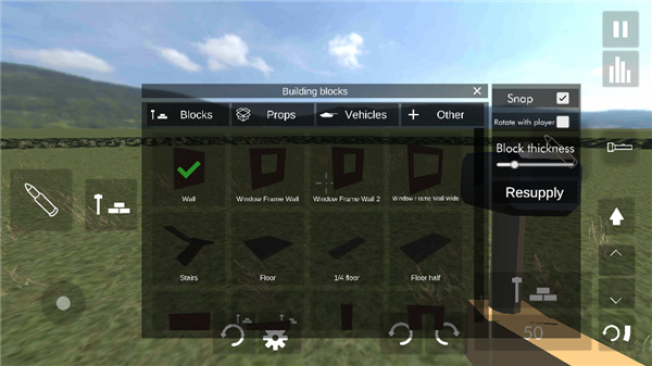 5、开始之后,里面为玩家提供了非常丰富的建筑素材,玩家可以根据自己的喜好,搭建自己的房子。