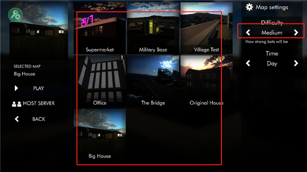 提供了几种地图供你选择,如大房子、原始房屋、大桥等等;