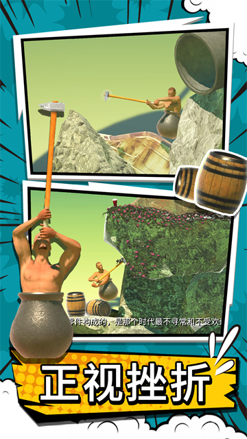 《掘地攀登》是超有趣的模拟休闲游戏!你将化身下半身困于水缸的男子,仅靠一把大铁锤,在各种高山障碍间艰难攀登。游戏中有不同地图可冒险,能赏独特风景,也有未知危险。努力克服困难前行,小心摔落前功尽弃,还有鬼畜动作和诡异手感,快来体验!