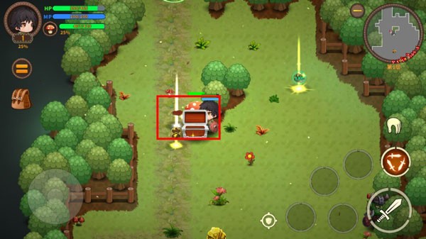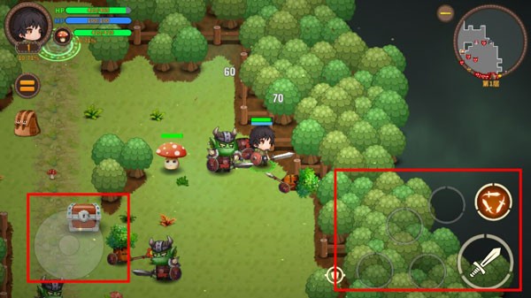 2、左边按钮可操纵英雄行动,右边按钮则可释放技能
