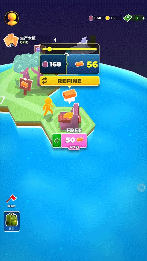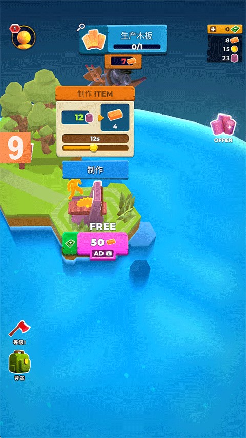 3、武器制造升级:能用金属道具制造实用武器,通过八个级别升级,提升神圣生产力以收获更多资源。