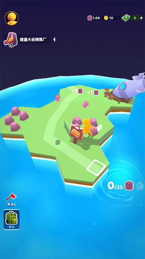 2、将获取的资源丢在空余的地方即可制造出一片新的土地,这样就有更多的木材可以砍了。