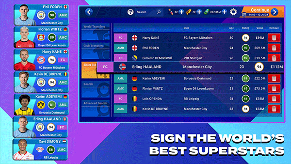 SoccerManager2025是我们迄今为止该系列最真实的一期。凭借曼城、德甲联赛1和2以及FIFPRO的许可,我们创造了迄今为止最真实的移动足球管理体验。有超过25,000名获得完全许可的球员,分布在来自900个不同国家的35多个俱乐部。每个球员都有反映他们真实表现的准确属性,所有这些都在我们专有的Soccerwiki.org数据库中保持最新状态。