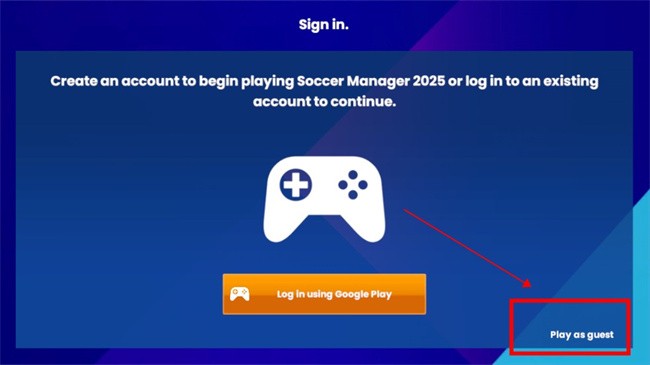 1、在本站下载安装好足球经理2025汉化版,运行游戏并点击play asguest