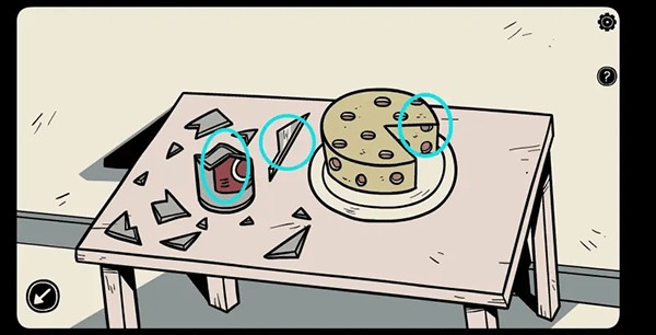 8、来到沙发那里用石头打破酒瓶获得「钥匙」和「玻璃碎片」,接着组合玻璃碎片和把手,并用它割下一小块「芝士」。