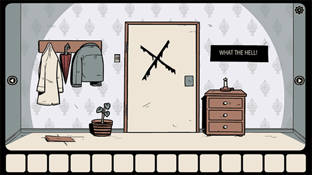 9、来到门口用钥匙打开抽屉拿走里面的「手套」,接着用玻璃碎片划开右边墙上的壁纸,再根据后面的提示打开被木板封住的门左侧的柜子获得「钥匙」和「开关」。