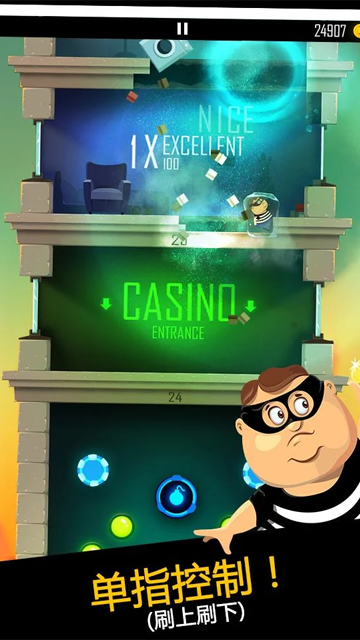 老爸曾是小偷是一款跳跃冒险闯关游戏,在老爸曾是小偷中,玩家将扮演一位因失业被逼上绝路的胖老爸,戴上佐罗眼罩、穿上斑马条纹服,化身“破坏之王”闯入摩天大楼,通过砸穿楼层、躲避警察、收集金币,开启一场从顶层到底层的疯狂逃亡。