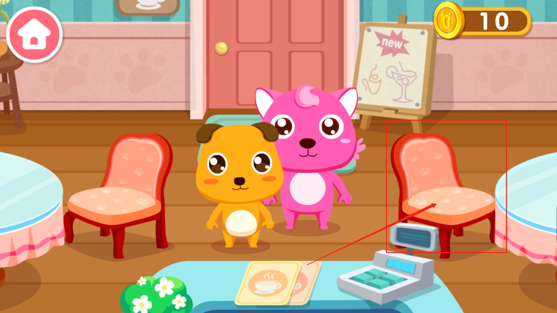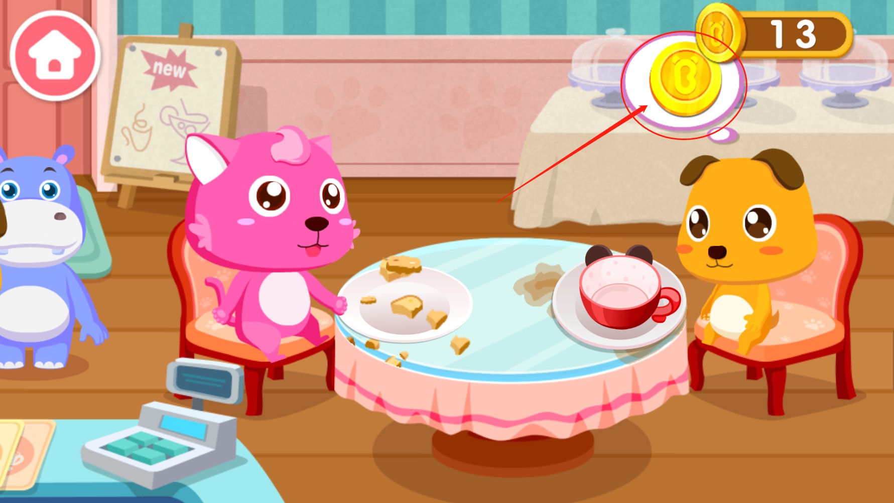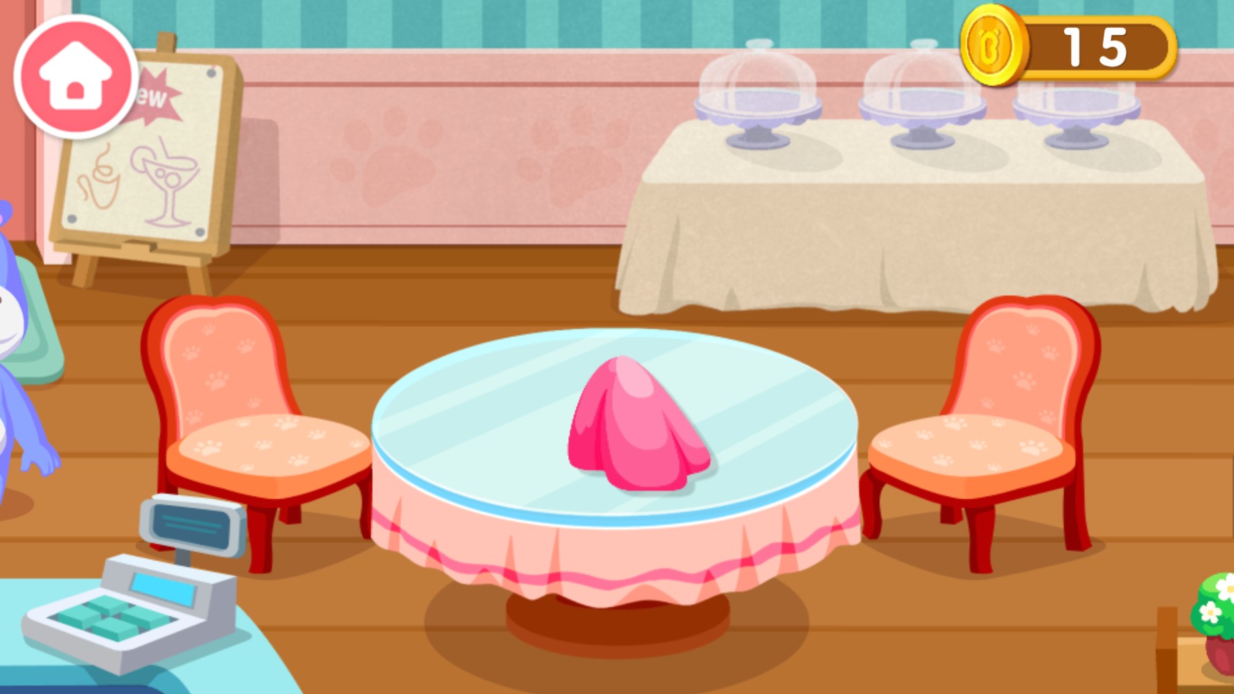 5、客人用餐结束,记得要收取金币噢,当然也不能忘记打扫桌子呢