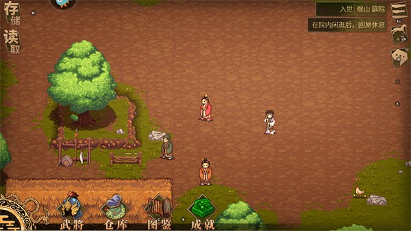 这里完成了卢植先生的小课堂剧情之后,就进入了下一个阶段。这里可以选择在院子和NPC自由对话或者直接返回物质内休息。