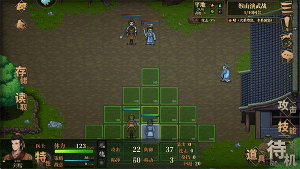 点击武将即可控制武将行军位置,可在界面查看武将信息以及技能介绍。每次行动只能选择一个操作(技能/攻击)然后结束回合!请根据实际情况进行战棋调整。
