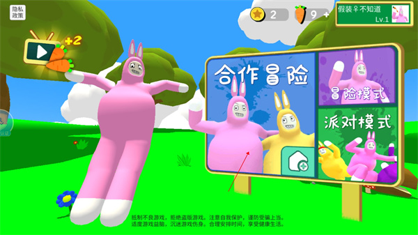 1、首先我们进入超级兔子人联机版当中,然后点击合作冒险;
