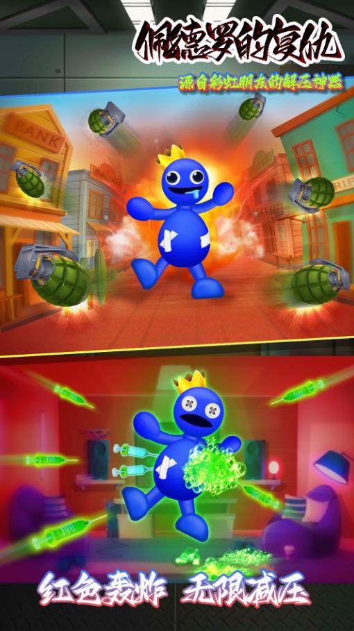 2、你想粉碎你周围的一切在这个毁灭性的游戏,彩虹之友?想踢打蓝色怪物更多吗?