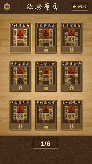 3、这里以“经典布局”为例,关卡需要一关一关的解,第一关从“横刀立马”开局。